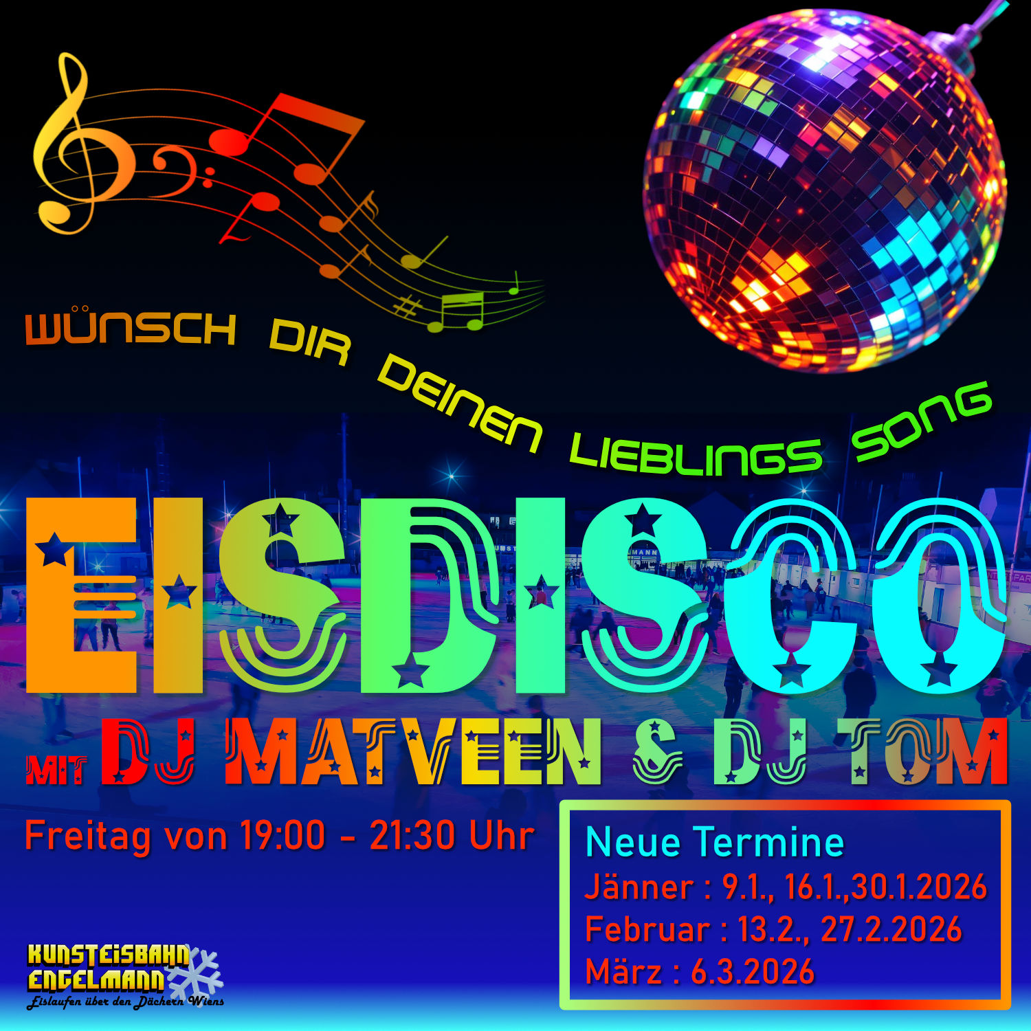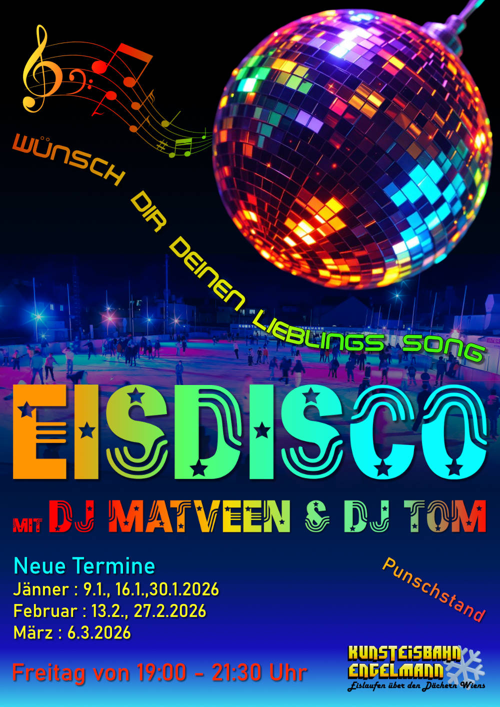 Eisdisco jeden Freitag ab 19:00 Uhr(außer Feiertag) Termine Eisdisco mit DJ Matveen & DJ Tom